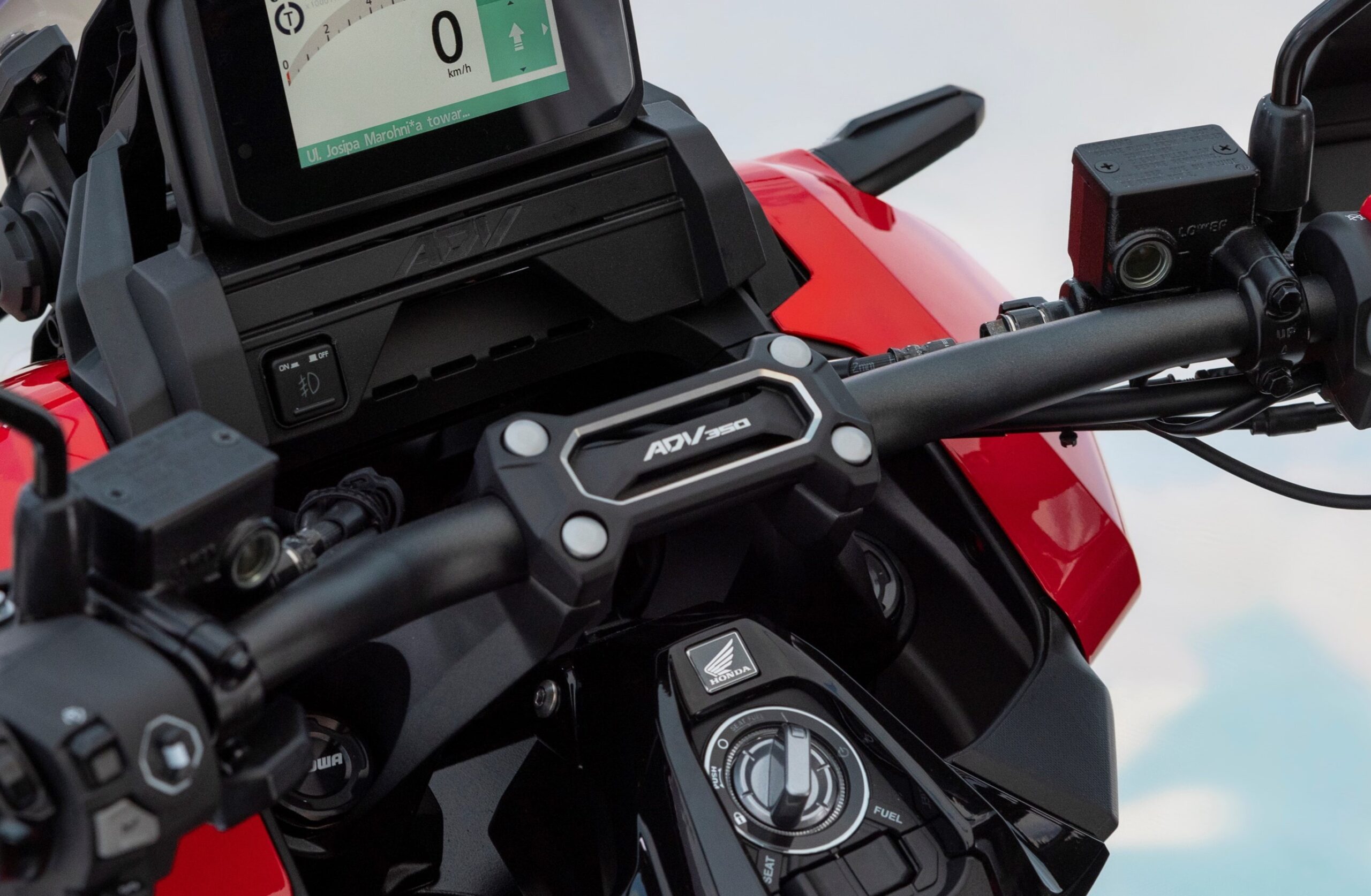 Lenkerbrücke für den ADV350 aus eloxiertem Aluminium.